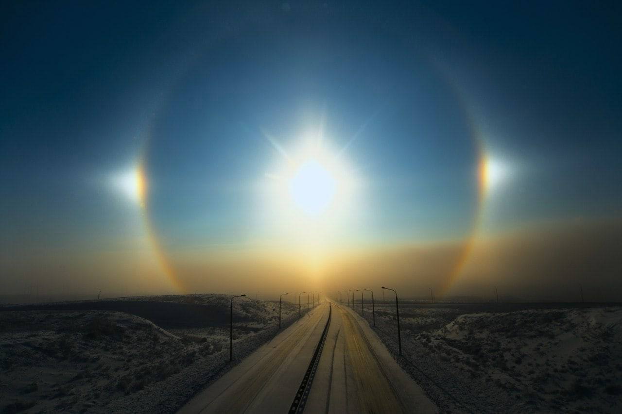 Saulės halas yra optinis reiškinys, kai šviesos lūžimas per ledo kristalus sukuria šviesos ratą aplink saulę.