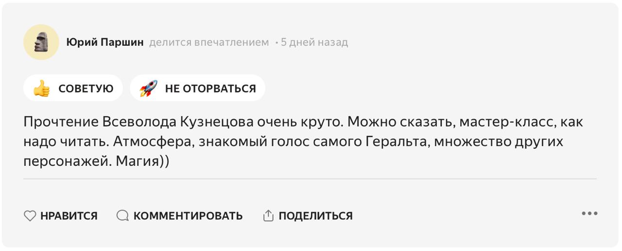 Audioversija „Perkryžos varnai“ yra ypatinga tuo, kad ją įgarsino Visvaldas Kuznecovas, kuris yra gerai žinomas kaip Geralto balsas populiariuose video žaidimuose. Jo unikalus balsas suteikia istorijai gyvybės ir autentiškumo, leidžiant klausytojams dar labiau įsijausti į Sapkowskio sukurtą pasaulį.