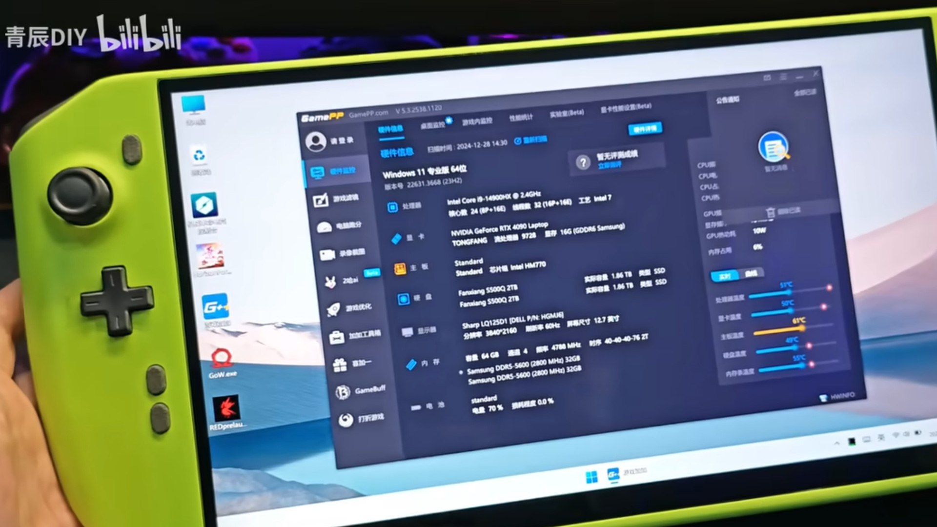 Nors šis įrenginys gali būti laikomas nešiojamu, jo tikru mobiliu įrenginiu pavadinti negalima. Vaizdo plokštė RTX 4090 pasiekia savo maksimalią galią tik prijungta prie elektros tinklo. Be to, Qingchen pamiršo įdiegti jutiklinę plokštę, todėl norėdami patogiai valdyti Windows 11, vartotojai turės nešiotis klaviatūrą ir pelę.