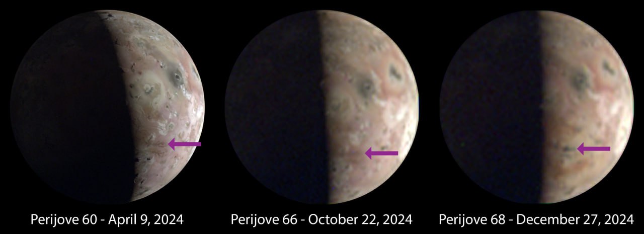 Antrasis „Juno“ misijos pateiktas vaizdas parodė tris nuotraukas, padarytas skirtingu laiku. Jose matomi paviršiaus pokyčiai išsiveržimo zonoje. Nuotraukų kokybė skiriasi, nes jos buvo gautos iš skirtingų atstumų.