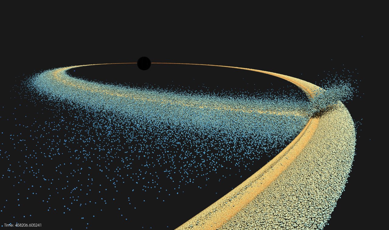Juodosios skylės gravitacija „ištempia“ žvaigždę į ilgą dujų srautą, kuris formuojasi į siaurą juostą, aplenkiančią juodąją skylę ir susiduriantį su savimi. Šis susidūrimas įkaitina medžiagą, sukeldamas švytėjimą, kartais ryškesnį nei visa galaktika.