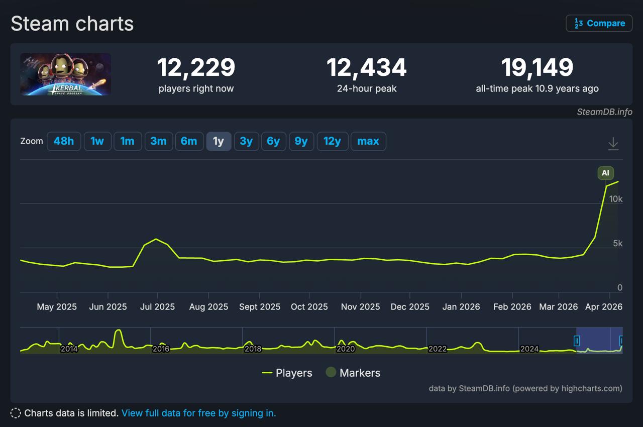 Populiarus kosminių laivų kūrimo ir paleidimo simuliatorius Kerbal Space Program vėl atsidūrė dėmesio centre. Žaidimas pritraukė daugybę naujų žaidėjų, o tai siejama su neseniai vykusia Artemis II misija.
