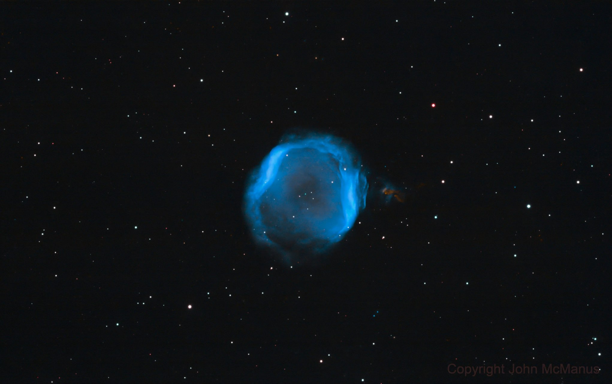 Ūkas Jones 1 yra ryškesnė spektre linijoje [O III] nei Hα linijoje. Dėl šios priežasties, naudojant siaurajuosčius filtrus, ji vaizduose įgauna būdingą melsvą atspalvį.
