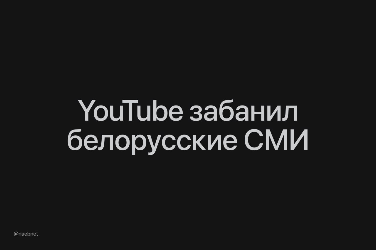 YouTube platforma pašalino tris Baltarusijos valstybinius televizijos kanalus: Belta, ONT ir STV. Šis žingsnis siejamas su galiojančiomis sankcijomis prieš Baltarusiją. Tai sukėlė didelį atgarsį šalyje, kurioje šie kanalai buvo svarbūs informacijos šaltiniai.